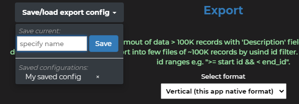 You might have a lot of configuration here so there is even an option to save your configuration in order of reusing it later [NARRATOR shows (spens) save.load export config drop-down in top-left part of dialog] .