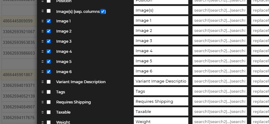 [NARRATOR Selects Vertical format. NARRATOR RE-ORDERS ITEMS OF EXPORT BY DRAGGING THEM TO BE LIKE ON NEXT IMAGE - title, handle, images ]